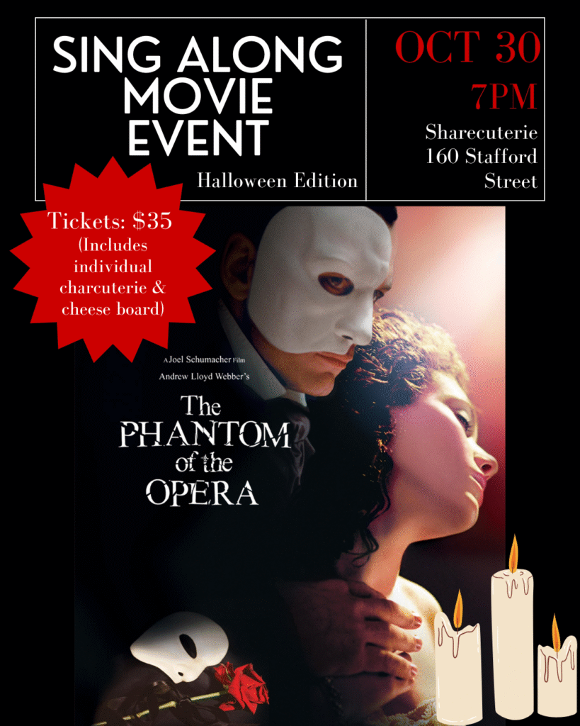 Step into the shadows… Our Phantom of the Opera Sing-Along Night is coming Oct 30 at 7 PM.