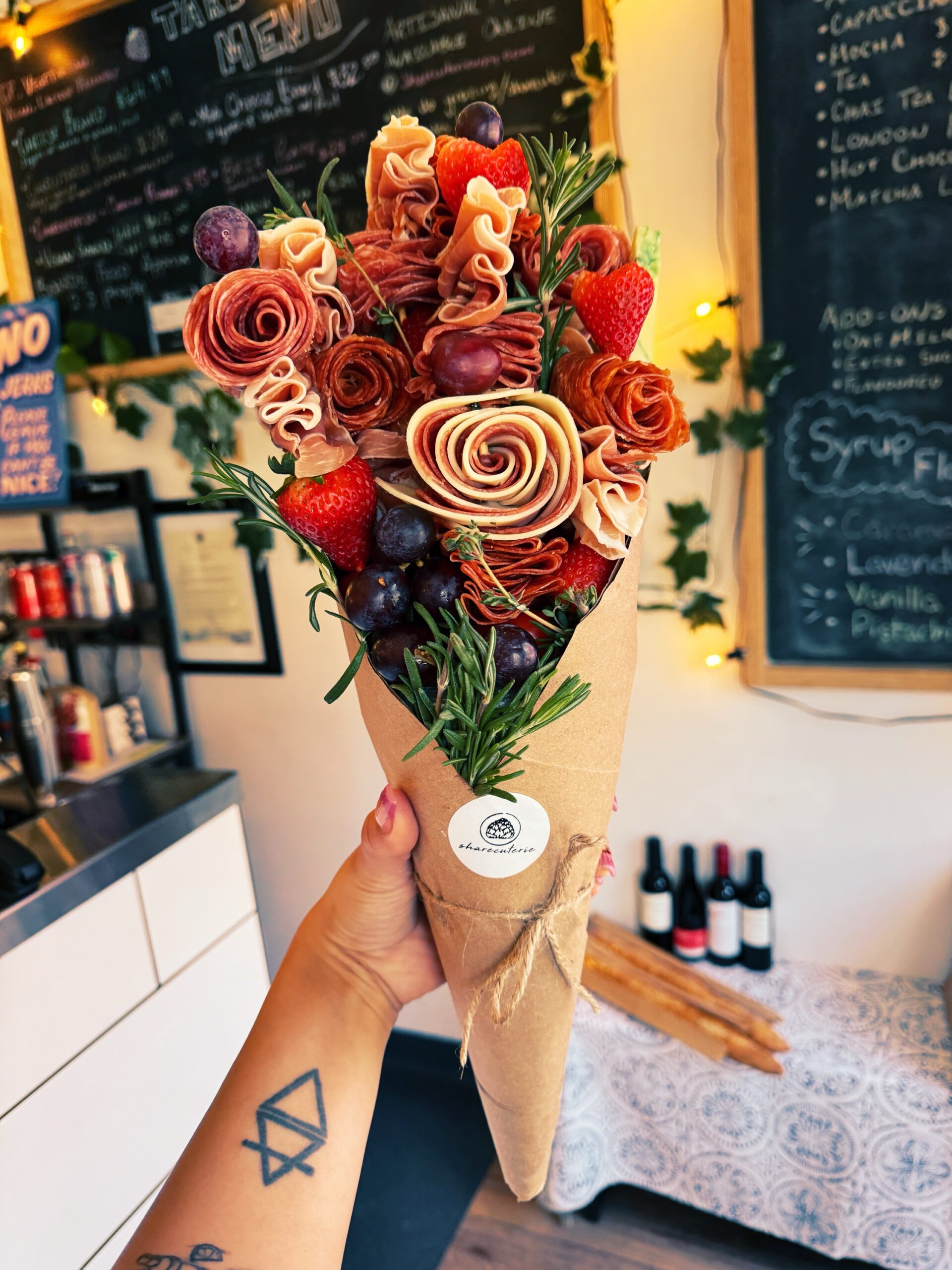 The Sharecuterie Bouquet includes Sharecuterie’s delicious local charcuterie flavours in the form of a gorgeous edible bouquet!